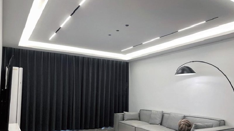This combination is a linear ceiling. It is assembled from 50X30 covering keels, side keels, L-shaped angle keels, side covering plug-ins, top covering connectors, linear lamp connectors, and leveling top and bottom parts. The vertical support uses the leveling top and bottom parts (110~180mm). Linear ceilings are divided into linear side ceilings and flat top linear ceilings.