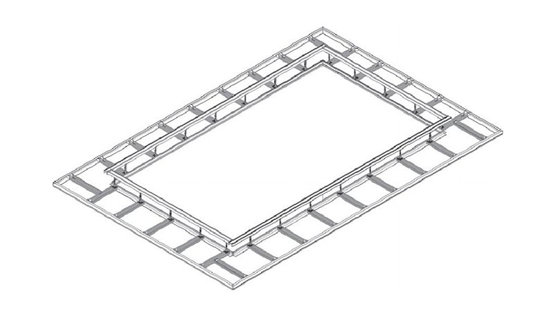 This combination is a straight edge ceiling without light trough. It is assembled by 50X30 covering keel, edge keel, L-shaped angle keel, edge covering plug-in, fixing parts, and leveling top and bottom parts. When the ceiling height is 110<ceiling height<180mm, the vertical support uses 110~180mm leveling top and bottom parts.