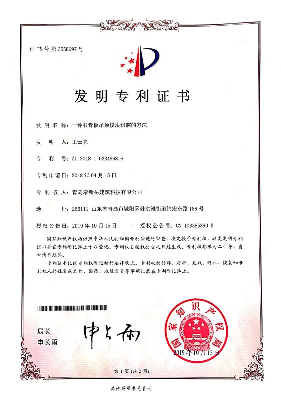 Modular gypsum board ceiling technology completely solves many problems associated with traditional gypsum board ceiling construction, such as long construction time, multiple material types, excessive construction waste, large amounts of on-site garbage, inconsistent construction quality, and inability to work with other trades. Modular gypsum board ceilings, assembled on-site, shorten construction time, eliminate construction waste, utilize a lightweight steel keel structure, and standardized production ensures reliable construction quality, environmentally friendly products, and reduces the likelihood of cracking at gypsum board joints. Therefore, modular gypsum board ceilings represent another major technological reform in on-site construction projects, following finished door sets, integrated kitchen and bathroom ceilings, finished kitchen appliances, and finished furniture.![]()